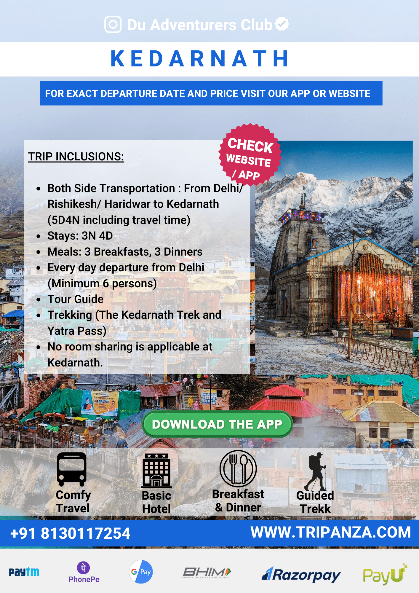 Note: The 16 km trek from Gaurikund to Kedarnath takes approximately 7–8 hours. Pony and palki options are available at extra cost.